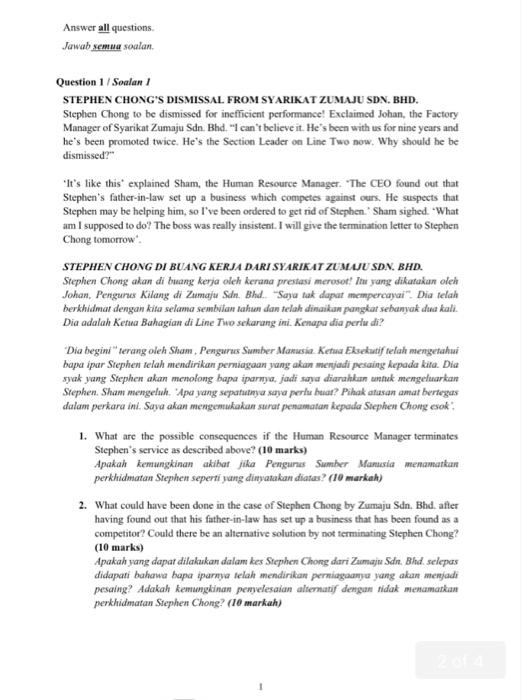Solved Answer All Questions Jawab Semua Soalan Question 1 Chegg Com